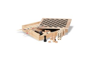 Leuk parcheesi-spel gemaakt van hout. Bevat een bord, 16 fiches in 4 verschillende kleuren en een dobbelsteen. Geschikt voor 2 tot 4 spelers. Met handig katoenen zakje om de stukken in op te bergen. Individueel gepresenteerd in een kraft-designdoos.