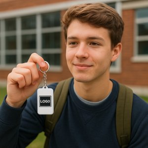 Een bedrukte sleutelhanger met logo draagt bij aan een professionele schoolidentiteit en bevordert herkenbaarheid binnen de schoolgemeenschap.