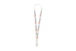 Lanyard van sterk geweven polyester met metalen karabijnhaak. Het onderste gedeelte is los te koppelen d.m.v. een kunststof kliksysteem.