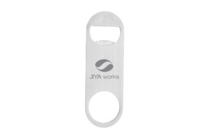 Sleutelhangerhouder voor smartphone en tablet, gemaakt van aluminium met matte afwerking, speciaal ontworpen voor lasergravure. Gepresenteerd in een individueel, hersluitbaar zakje.
