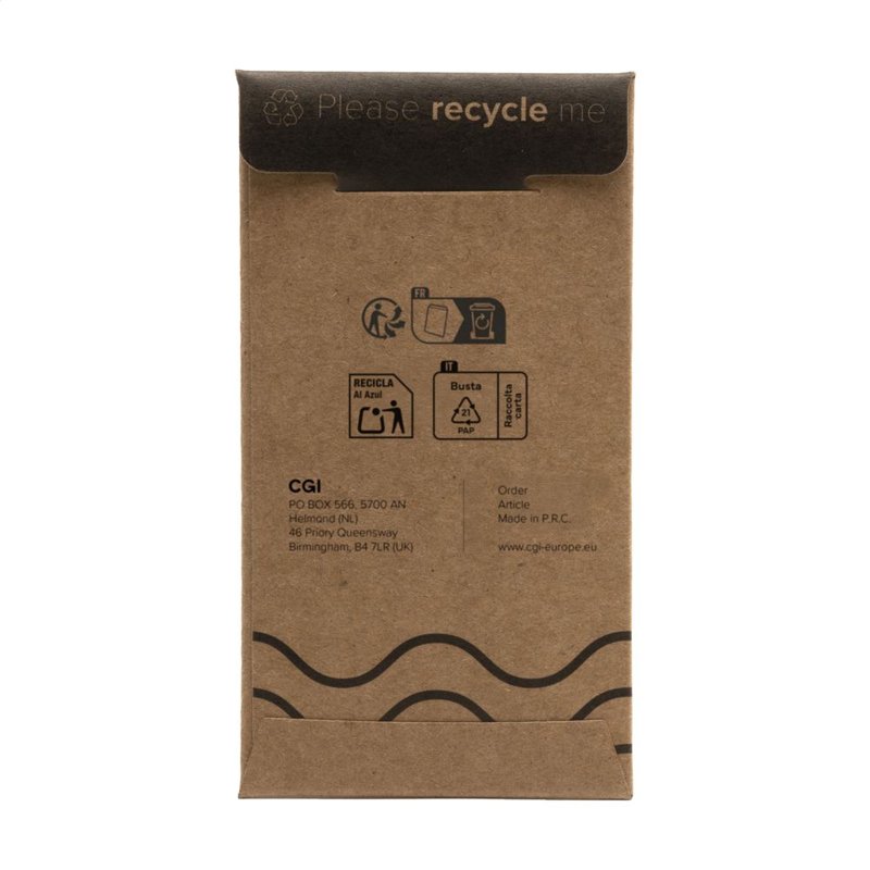 Rechthoekige, beukenhouten sleutelhanger aan stevige sleutelring. Per stuk in kraft envelop.