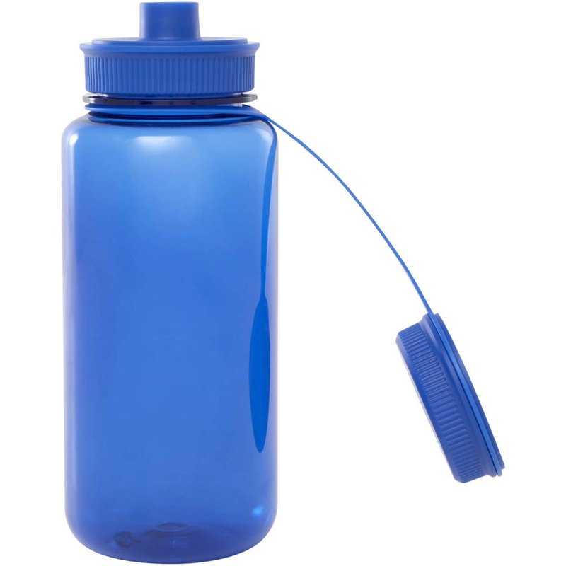 Enkelwandige sportfles gemaakt van RCS-gecertificeerd RPET, met een schroefdop en lekvrije deksel met een handig, in de dop geïntegreerde handgreep om mee te nemen. Eenvoudig te reinigen en vullen door de dubbele opening. In overeenstemming met het door de EFSA (Europese Autoriteit voor voedselveiligheid) goedgekeurde PET-recyclingproces. Inhoud: 900 ml.