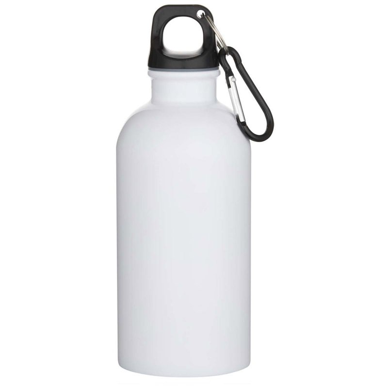 Blijf altijd gehydrateerd met deze duurzame maar toch lichte waterfles van 400 ml, gemaakt van RCS-gecertificeerd gerecycled roestvrij staal met een speciale coating voor sublimatie. Het is de perfecte metgezel voor sport, dagtrips of op kantoor. De enkelwandige Oregon-fles heeft een draaideksel en biedt voldoende ruimte om elk soort logo toe te voegen. Bevestig de meegeleverde karabijnhaak (niet geschikt om mee te klimmen) stevig aan een tas om verlies te voorkomen.
