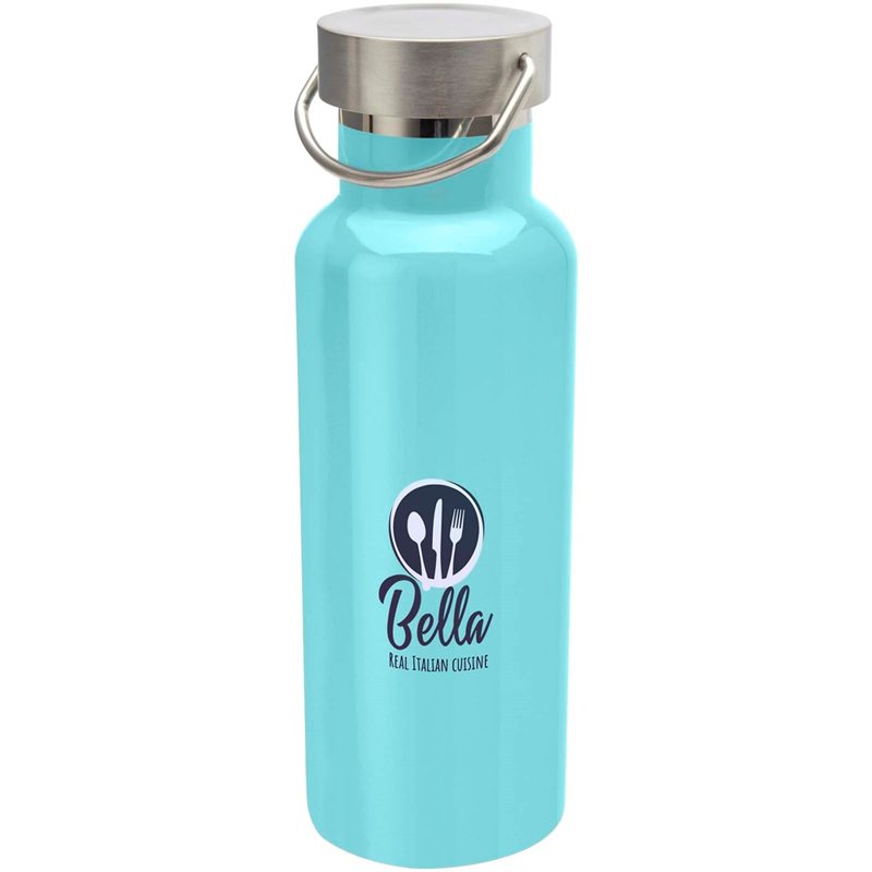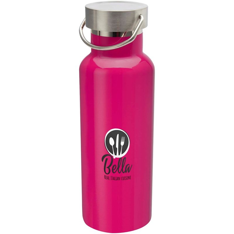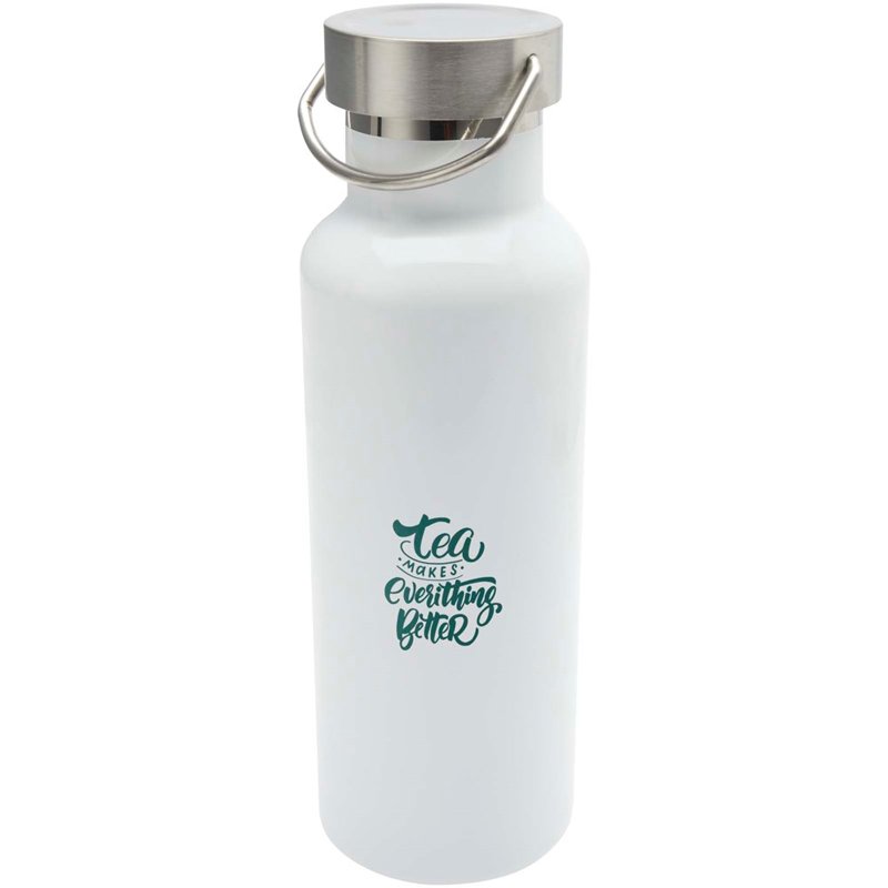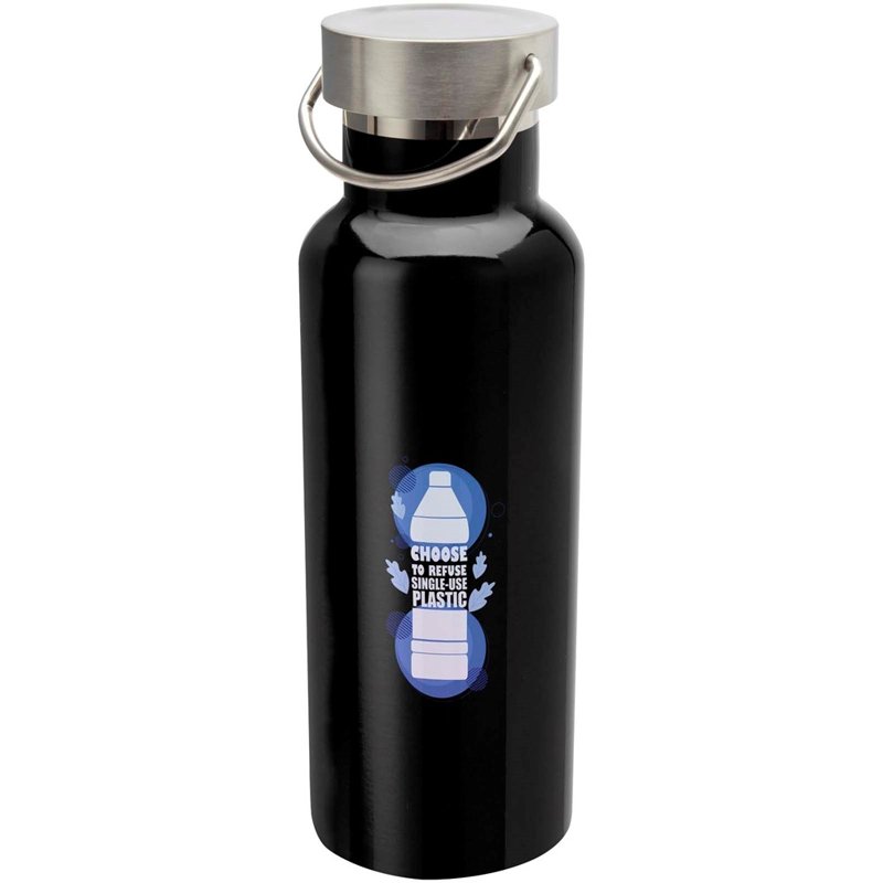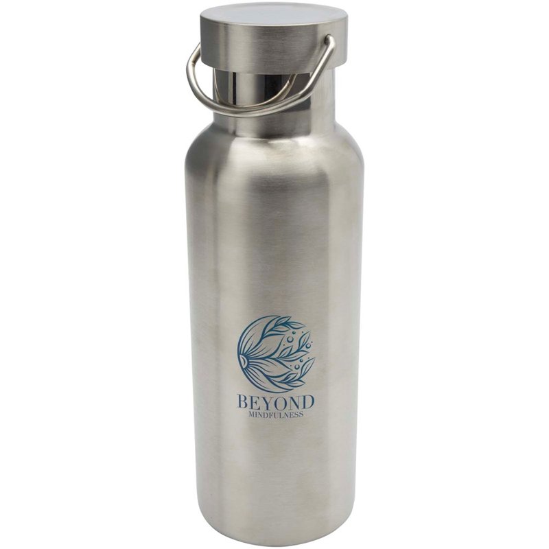 Duurzame, dubbelwandige vacuüm geïsoleerde RCS-gecertificeerde roestvrijstalen waterfles met een roestvrijstalen schroefdop en een duurzame roestvrijstalen handgreep. Inhoud: 500 ml. Lekvrij. Geleverd in een geschenkverpakking