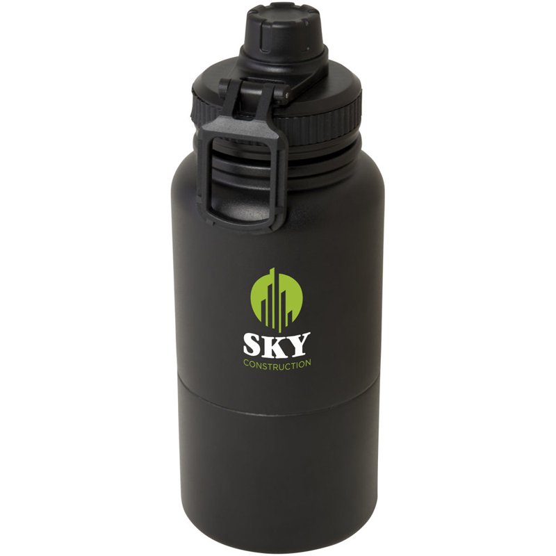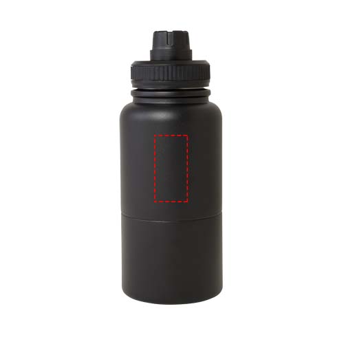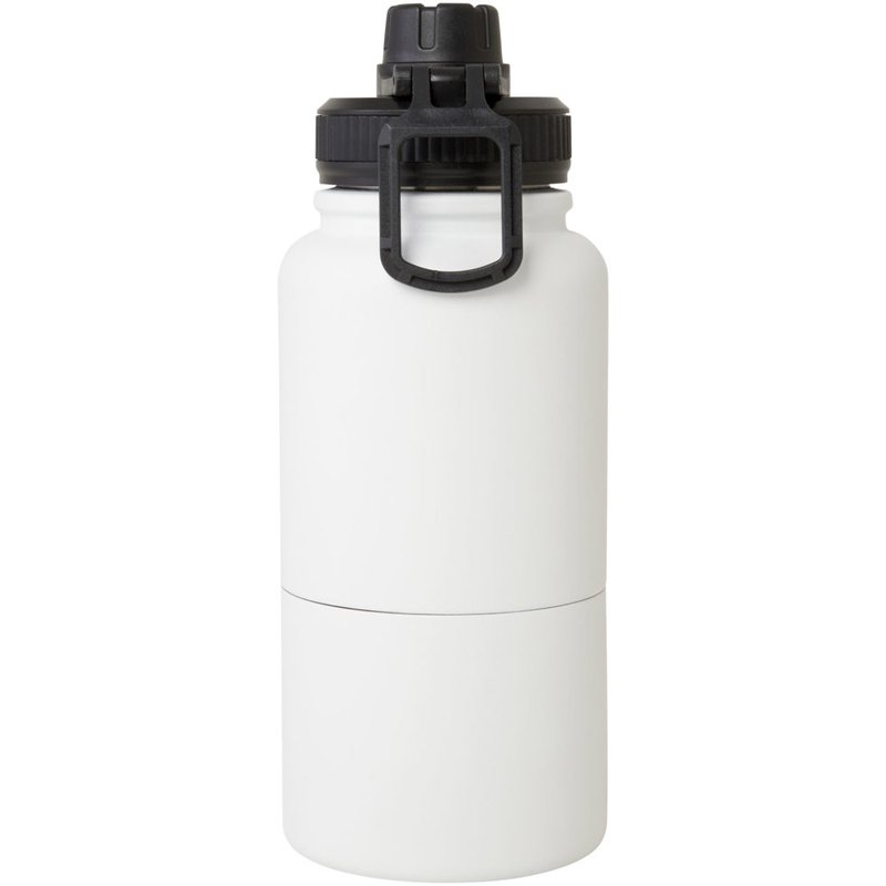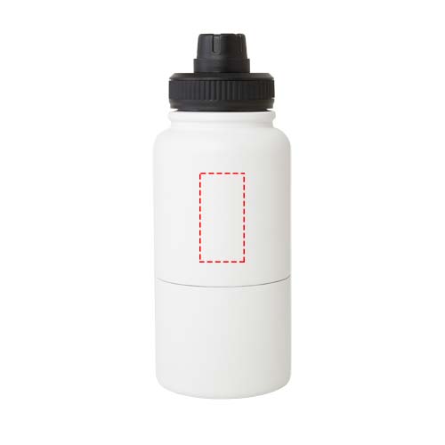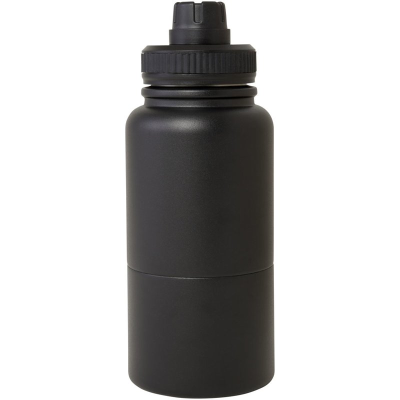 Multifunctionele, RCS-gecertificeerde roestvrijstalen geïsoleerde fles met een verwijderbare opslagcontainer. Het bovenste deel van de fles is voorzien van een koperen geïsoleerde thermoskan met een inhoud van 530 ml, die dranken enkele uren warm of koud houdt. Het onderste deel is een dubbelwandige container met een inhoud van maximaal 340 ml. Je kunt hem gebruiken als beker voor je favoriete koude dranken of om snacks of andere kleine voorwerpen in te bewaren. Gepresenteerd in een gerecyclede kartonnen geschenkverpakking.