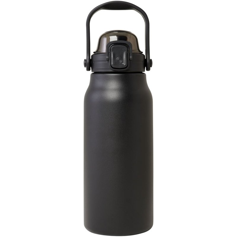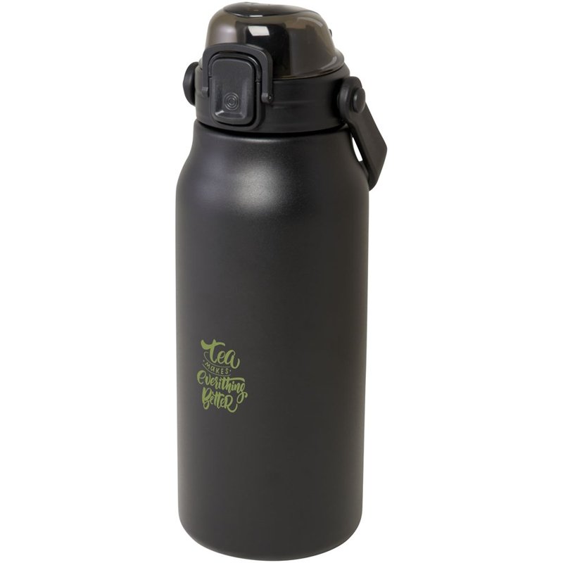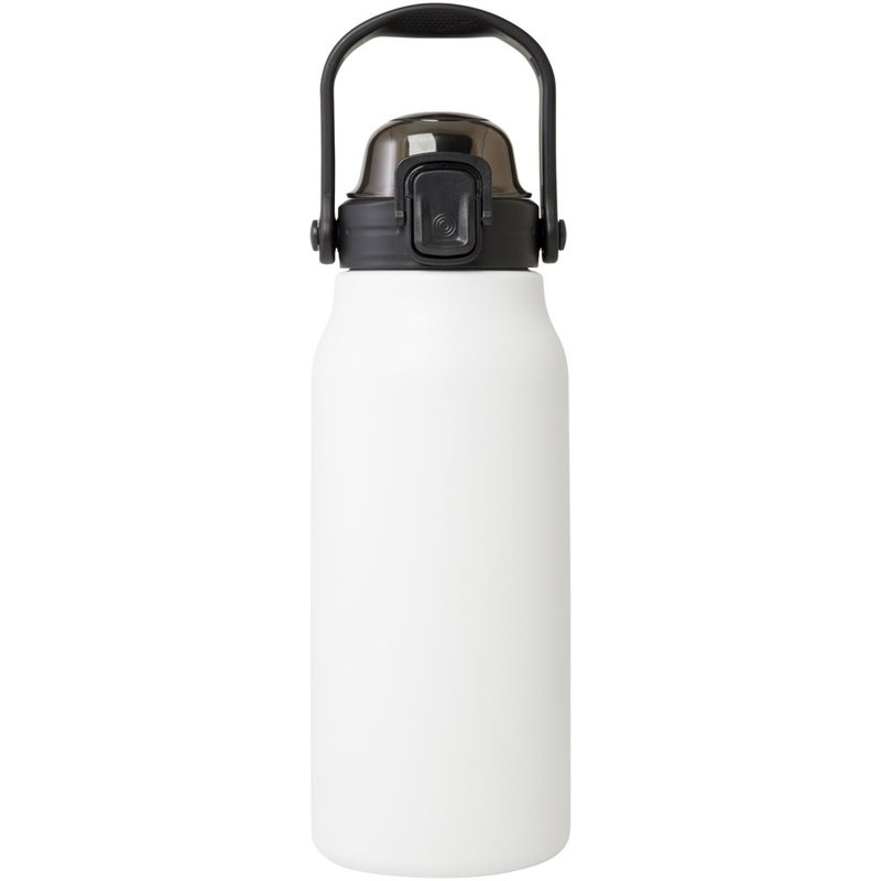 Deze grote RCS-gecertificeerde gerecyclede roestvrijstalen fles houdt je de hele dag in stijl gehydrateerd. De koperen vacuümisolatie houdt drankjes enkele uren warm of koud en is dankzij het inklapbare handvat gemakkelijk mee te nemen. De fles is lekvrij en heeft een eenvoudig openingsmechanisme met knop. Inhoud 1600 ml Gepresenteerd in een gerecyclede kartonnen geschenkverpakking.