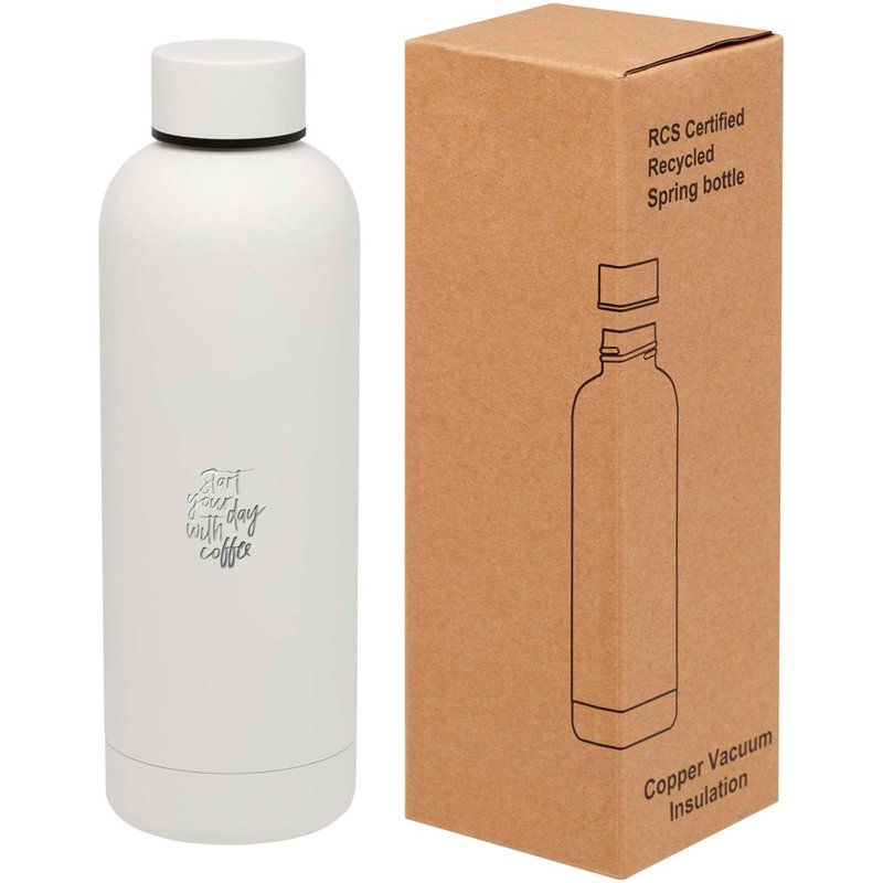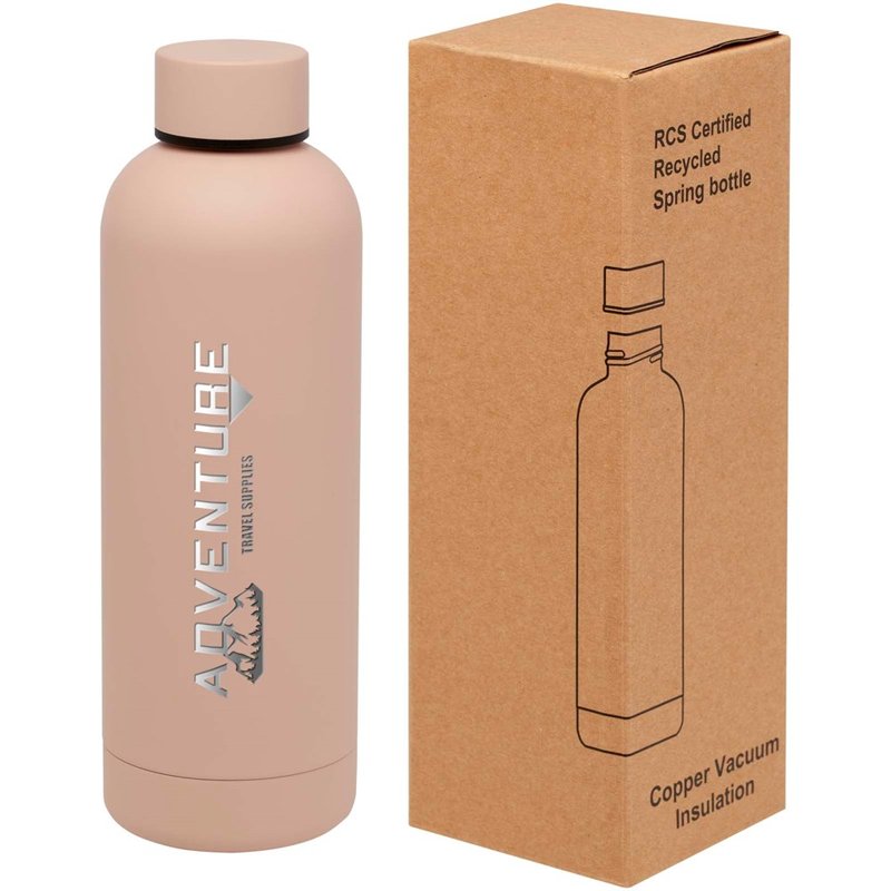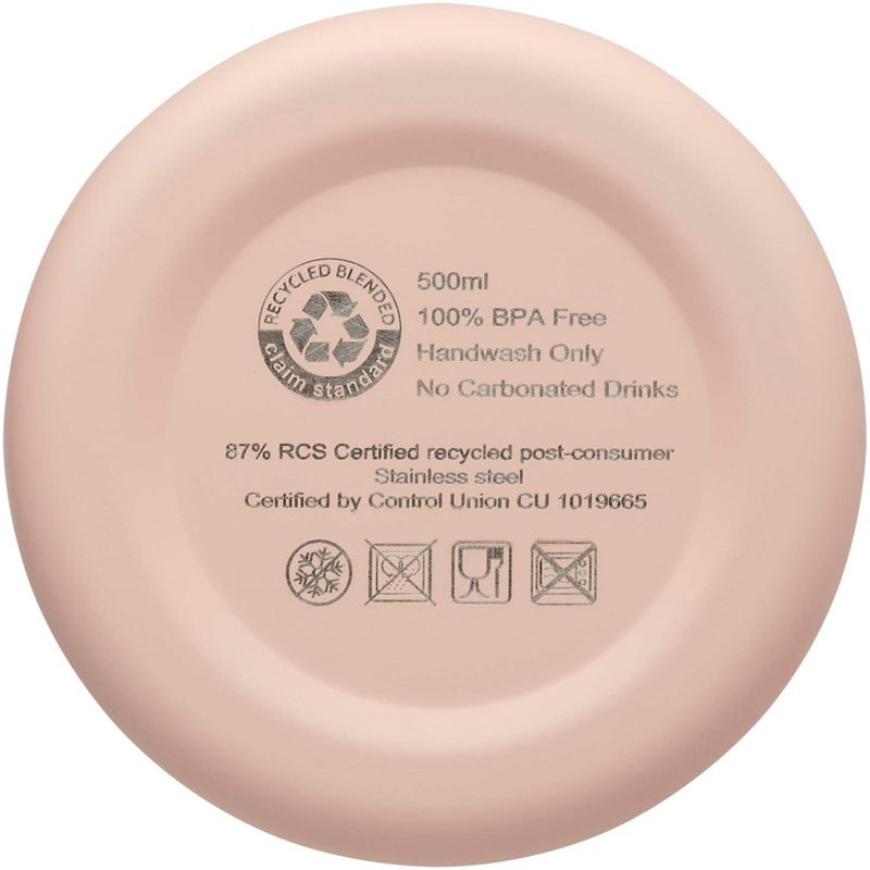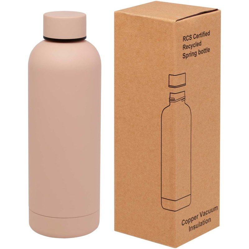 Koperen vacuümgeïsoleerde RCS-gecertificeerde roestvrijstalen fles met strak ontwerp. De geïsoleerde roestvrijstalen constructie voorkomt condensatie aan de binnenkant van de fles en de trendy matte poederlakafwerking maakt hem extra duurzaam. BPA-vrij, getest en goedgekeurd onder de Duitse voedselveiligheidswetgeving (LFGB). Getest en goedgekeurd op ftalaten volgens de REACH-regelgeving. Inhoud 500 ml Handwas aanbevolen. Gepresenteerd in een gerecyclede kartonnen geschenkverpakking. Houdt drankjes 12 uur warm of 24 uur koud.