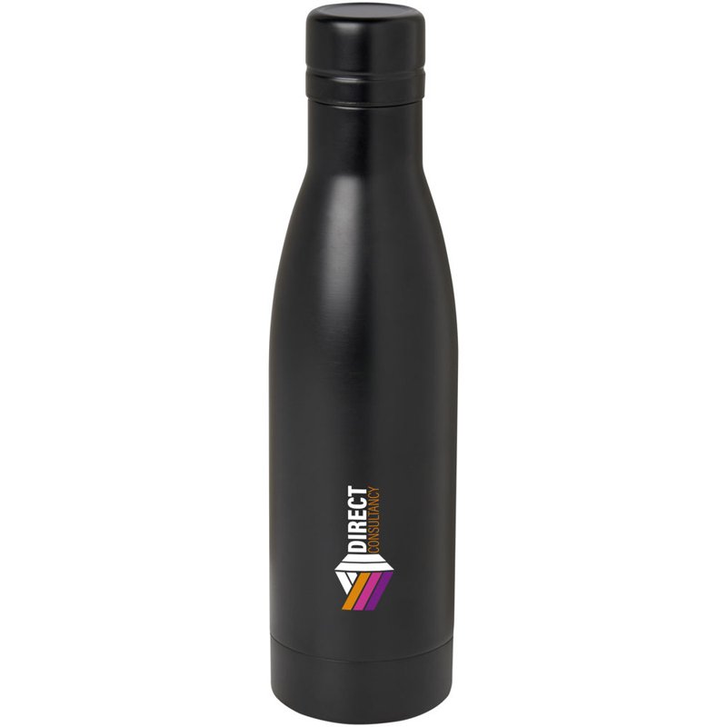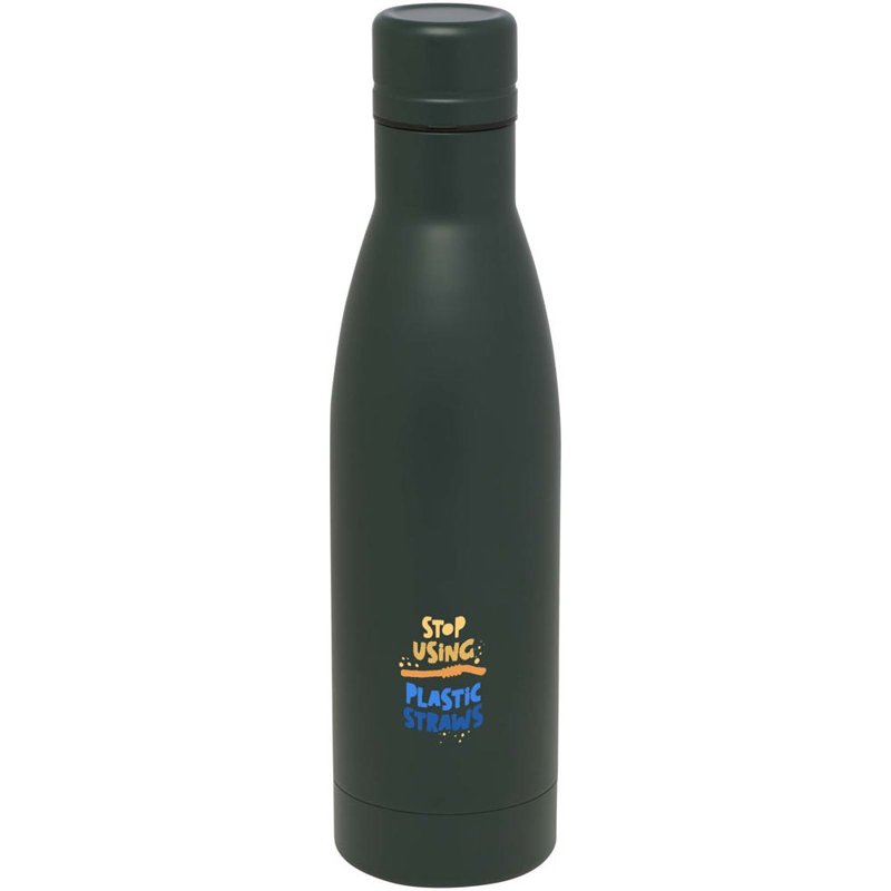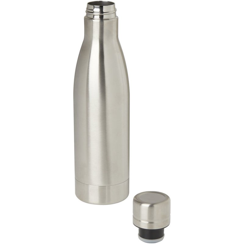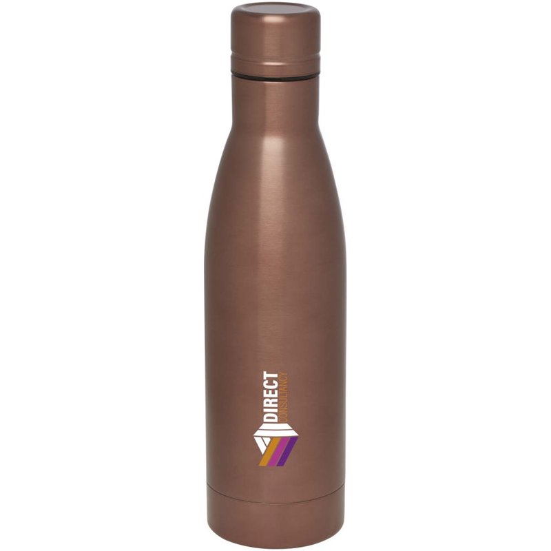 Houd je dranken 12 uur warm of 24 uur koud met de Vasa koperen vacuümgeïsoleerde fles. Dubbelwandig en gemaakt van RCS-gecertificeerd gerecycled roestvrij staal met vacuümisolatie en een verkoperde binnenwand, wat betekent dat je drank warm of ijskoud wordt gehouden, afhankelijk van je wensen. BPA-vrij en getest en goedgekeurd onder de Duitse voedselveiligheidswetgeving (LFGB) en voor ftalaten onder REACH. Inhoud: 500 ml. Geleverd in een geschenkverpakking van verantwoord en duurzaam materiaal.