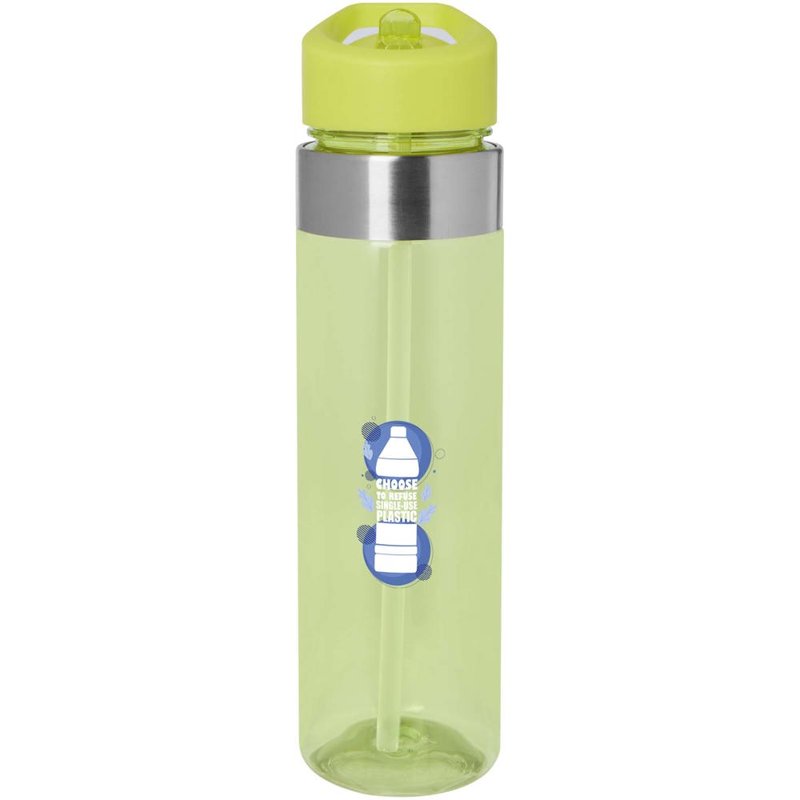 650 ml waterfles en een handige open te trekken tuit om makkelijk te drinken. Gemaakt van duurzaam Tritan-materiaal met roestvrijstalen details op de bovenkant van de fles.