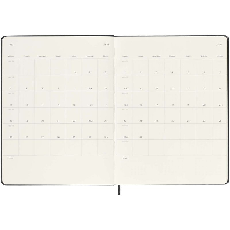 De Moleskine week-agenda voor 12 maanden met harde kaft XL biedt een stijlvolle en praktische oplossing voor professionals die hun tijd efficiënt willen beheren. Deze agenda is perfect om jouw merk te versterken door deze te laten bedrukken met jouw bedrijfslogo. Het biedt een overzichtelijke weergave van de week en genoeg ruimte voor notities, wat onmisbaar is voor drukke ondernemers en marketeers. Met deze agenda ben je altijd georganiseerd en heb je al jouw belangrijke afspraken en taken binnen handbereik.