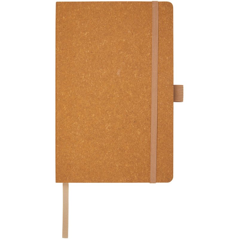 Notitieboek van gerecycled leer met een elastische band, pennenlus, lintmarkering, vak van kraftpapier en 80 vellen (70 g/m²) GRS gerecycled gelinieerd crèmekleurig papier. De gerecyclede leren cover biedt een duurzame en stijlvolle buitenlaag die de pagina's binnenin beschermt. Een van de voordelen van het gebruik van een gerecycled leren notitieboek is dat het zowel stijlvol als duurzaam is. De unieke textuur en uitstraling van gerecycled leer geven elk notitieboek een onderscheidend karakter en persoonlijkheid.