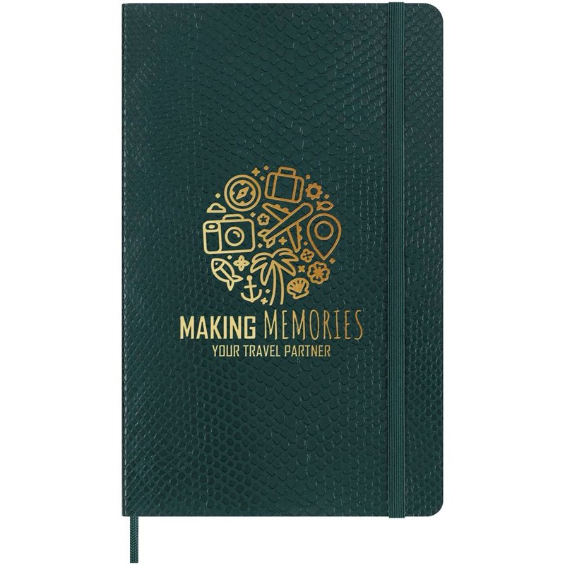 Aandacht voor detail, design en vakmanschap komen samen in dit luxe notitieboek dat is gemaakt in samenwerking met VEGEA®, een baanbrekend bedrijf dat organisch afval uit de Italiaanse wijnindustrie omzet in nieuwe materialen. Voorzien van een zachte kaft met pythoneffect (100% VEGEA®) met afgeronde hoeken, elastische sluiting en bijpassende paginalintmarkering, ivoorkleurig, 100 g/m² zuurvrij papier, stickers voor persoonlijke aanpassingen op de rug, een uitvouwbaar binnenvak, een “In geval van verlies”-vermelding op het schutblad en een zwarte, herbruikbare geschenkverpakking.