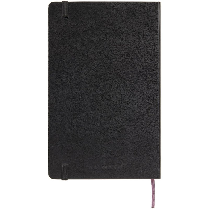 De Moleskine Classic large (13 x 21 cm) heeft een harde omslag van gebonden karton met afgeronde hoeken, zuurvrij papier, een bladwijzer en elastische sluiting. De eerste pagina biedt ruimte voor persoonsgegevens en het noteren van een beloning die de eerlijke vinder in geval van verlies ontvangt. Aan de achteromslag bevindt zich aan uitbreidbaar binnenvak met daarin de geschiedenis van Moleskine. Dit vak kan worden gebruikt voor losse papieren en notities. Bevat 240 ivoorkleurige effen pagina's. Verkrijgbaar in diverse stijlvolle, levendige kleuren.
