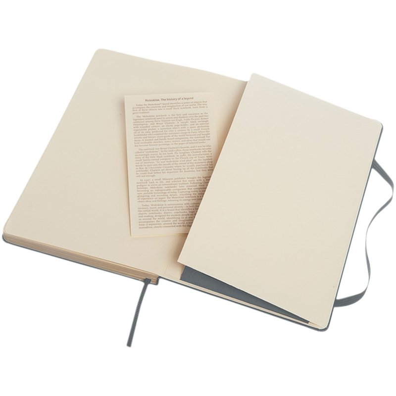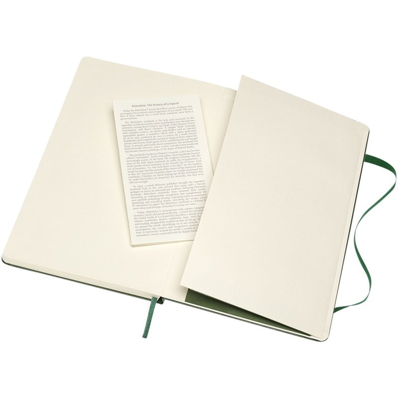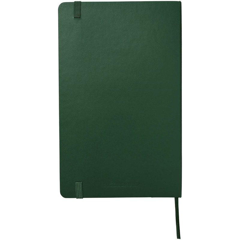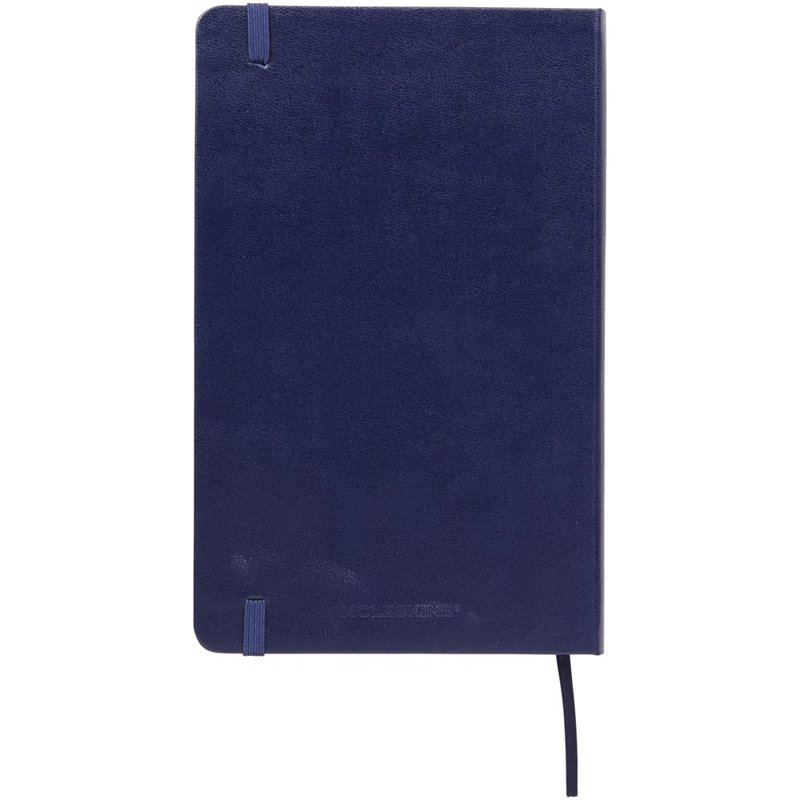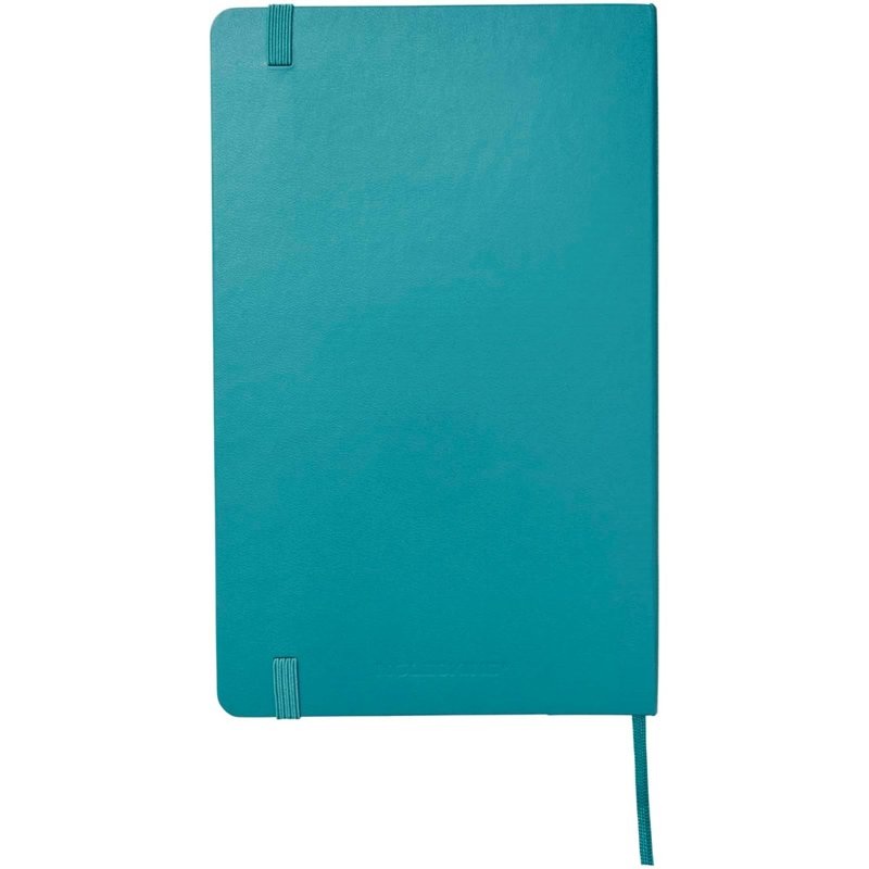De Moleskine Classic large (13 x 21 cm) is voorzien van een harde omslag van gebonden karton met afgeronde hoeken, zuurvrij papier, een bladwijzer en een elastische sluiting. De eerste pagina biedt ruimte voor persoonsgegevens en het noteren van een beloning die de eerlijke vinder in geval van verlies ontvangt. Aan de achteromslag bevindt zich aan uitbreidbaar binnenvak met daarin de geschiedenis van Moleskine. Dit vak kan worden gebruikt voor losse papieren en notities. Bevat 240 ivoorkleurige gelinieerde pagina's. Verkrijgbaar in diverse stijlvolle, levendige kleuren.