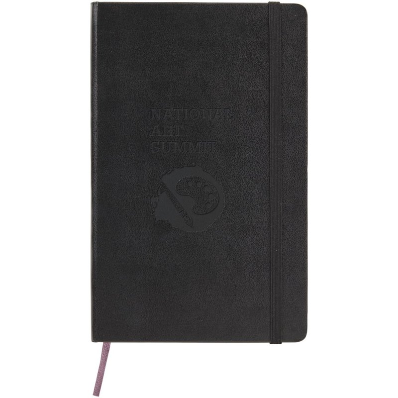 Classic Moleskine groot notitieboek met harde omslag in de populaire kleur zwart, plus een variatie aan stijlvolle levendige kleuren. Met afgeronde hoeken, elastische sluiting en een bladwijzer. Uitbreidbaar kartonnen vak en doek aan de binnenkant van de achterste omslag. Bevat 240 ivoorkleurige gestippelde pagina's.