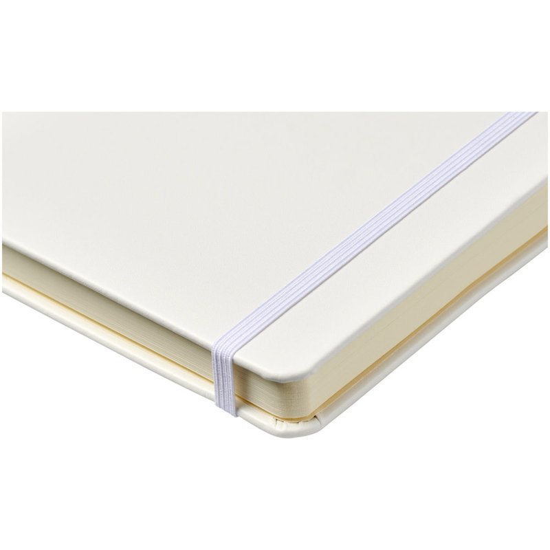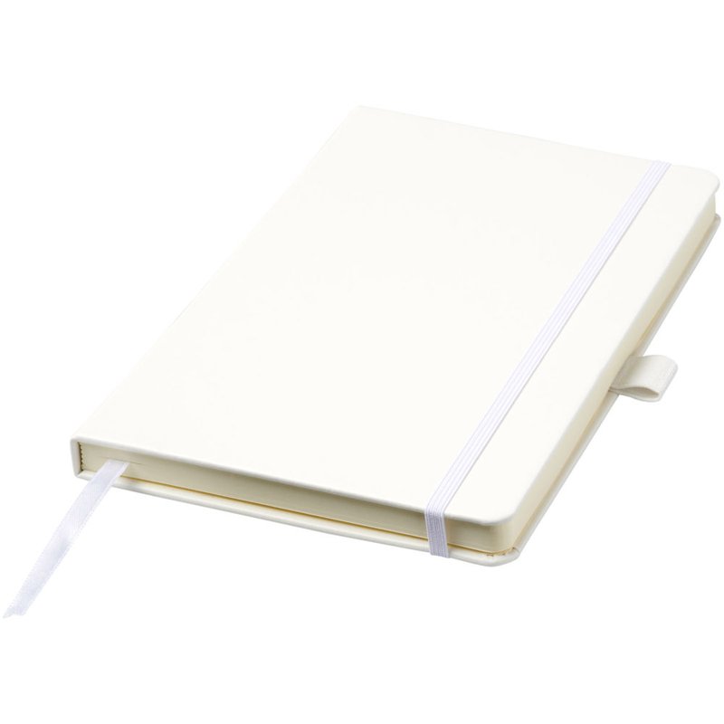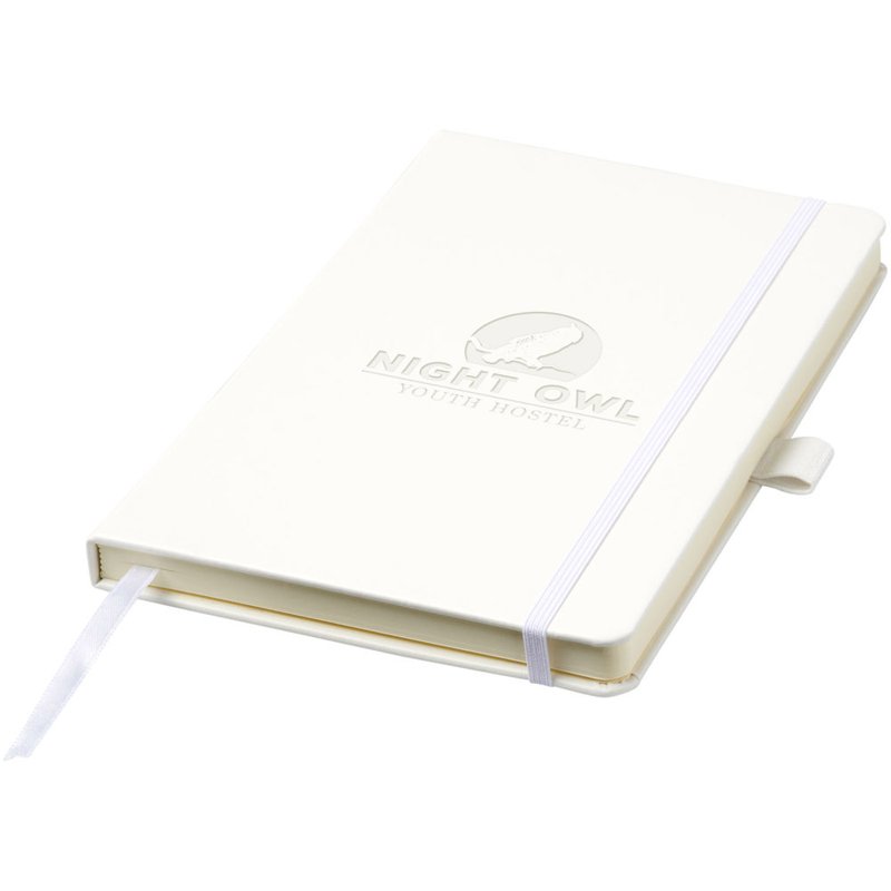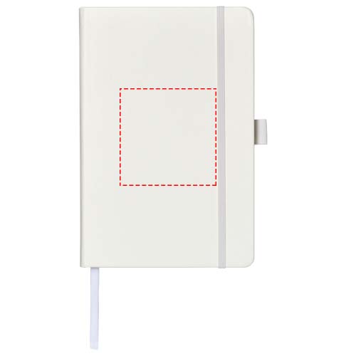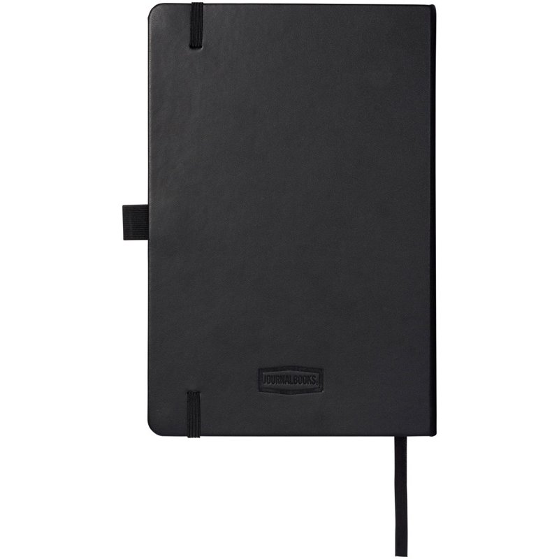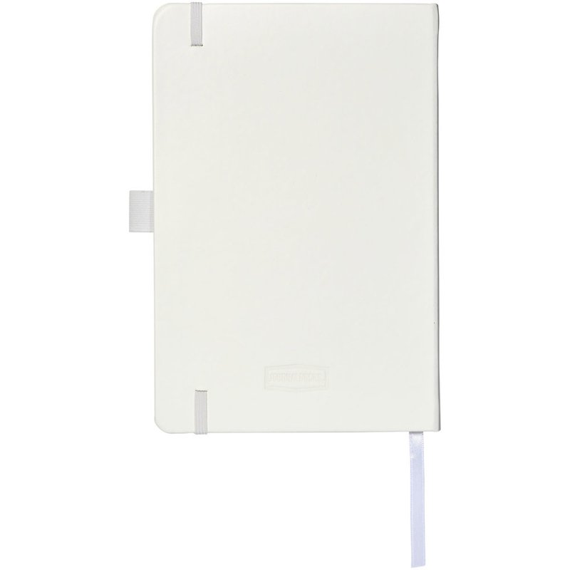 Kunstleren A5 (14,2 cm x 21,4 cm) notitieboek (karton bekleed met leerpapier) met elastische band, leeslint, pennenlus en accordeon-achterzak. Inclusief 96 vellen gelinieerd crèmepapier in 80 g/m2 en wordt aangeboden in een Journalbook witte hoes.