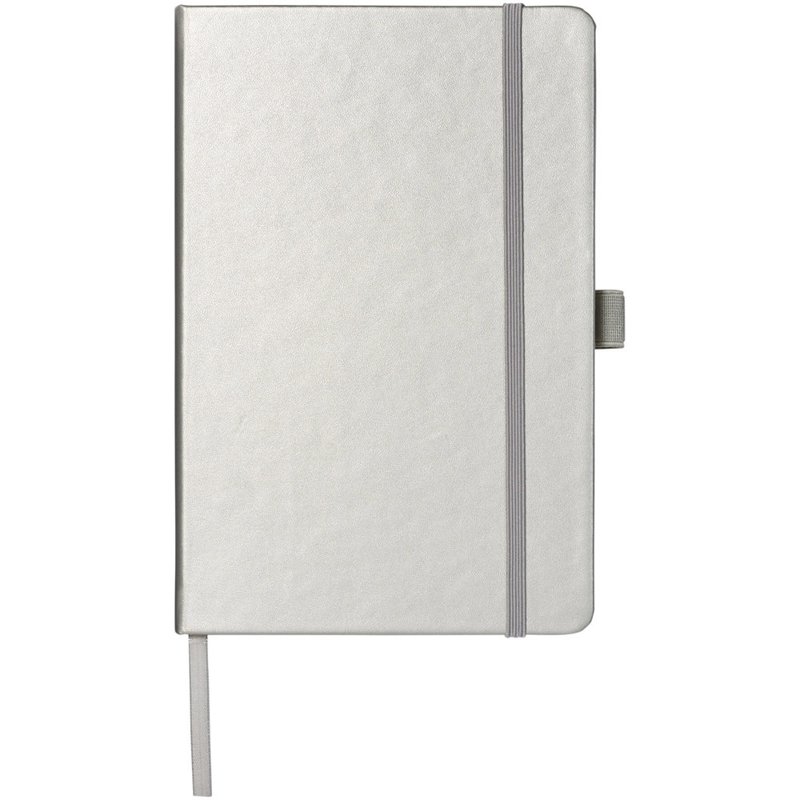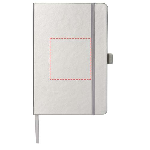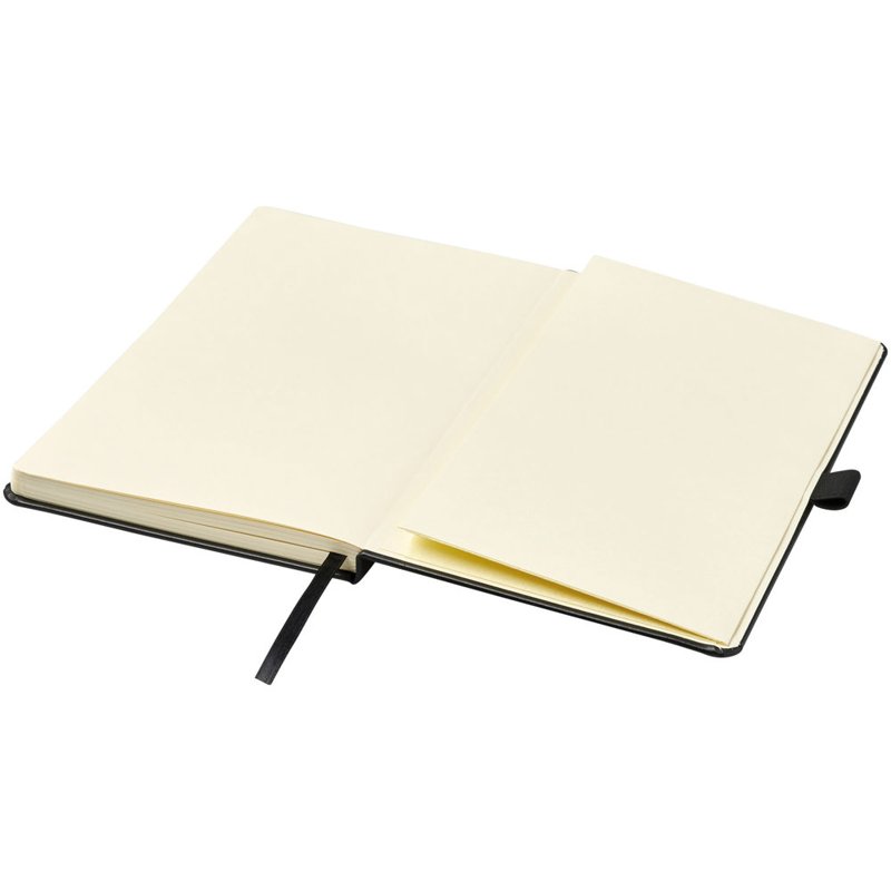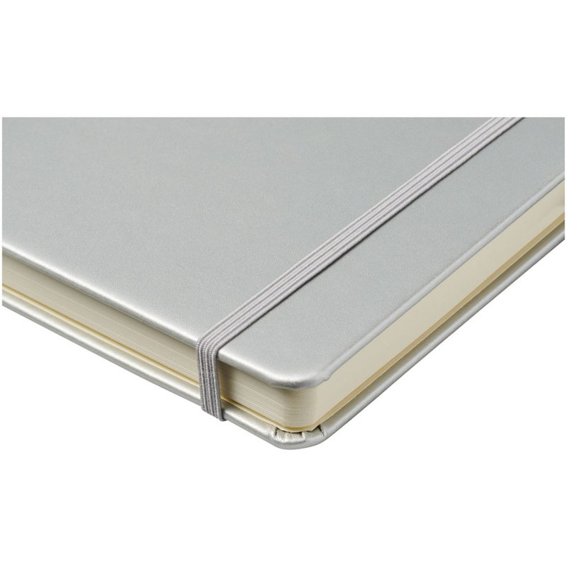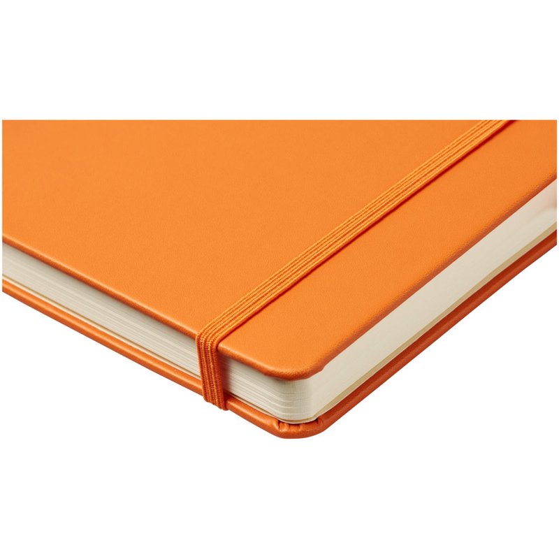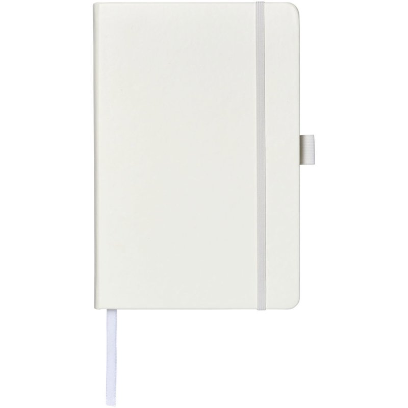 Kunstleren A5 (14,2 cm x 21,4 cm) notitieboek (karton bekleed met leerpapier) met elastische band, leeslint, pennenlus en accordeon-achterzak. Inclusief 96 vellen gelinieerd crèmepapier in 80 g/m2 en wordt aangeboden in een Journalbook witte hoes.