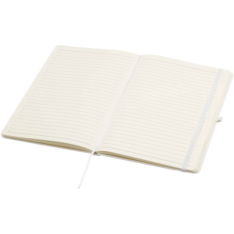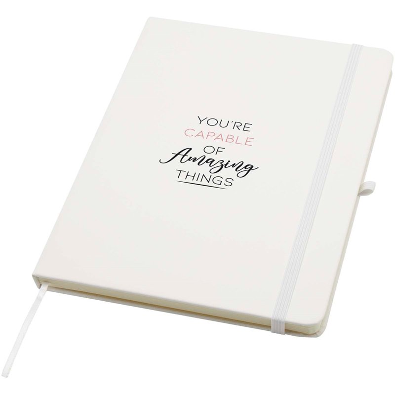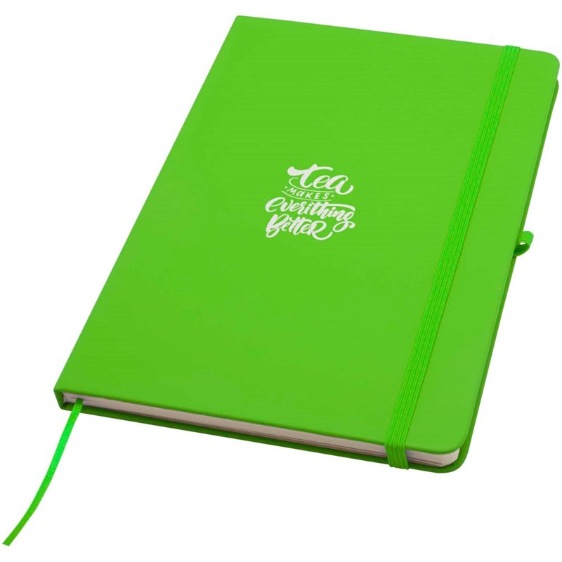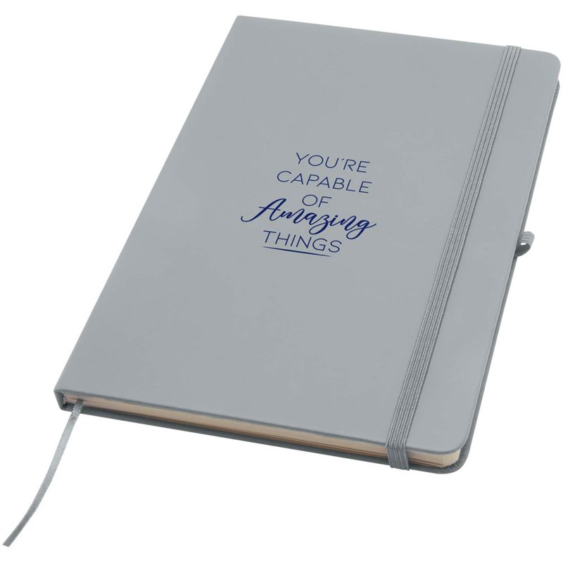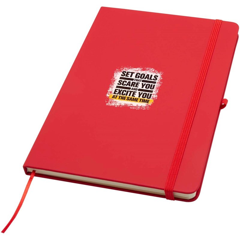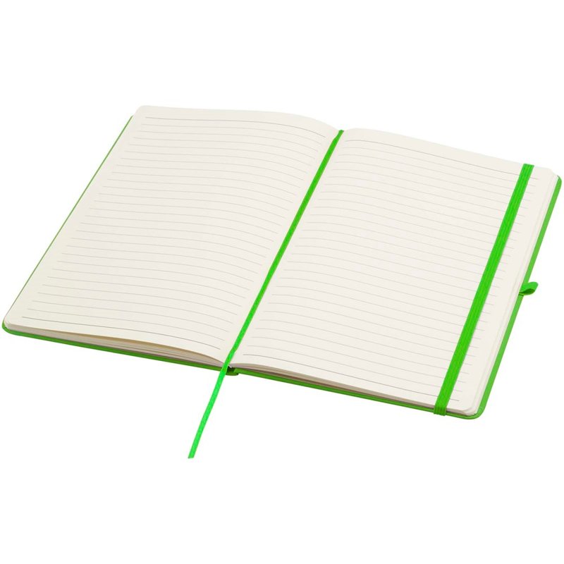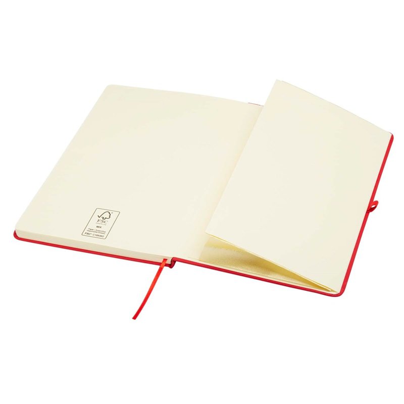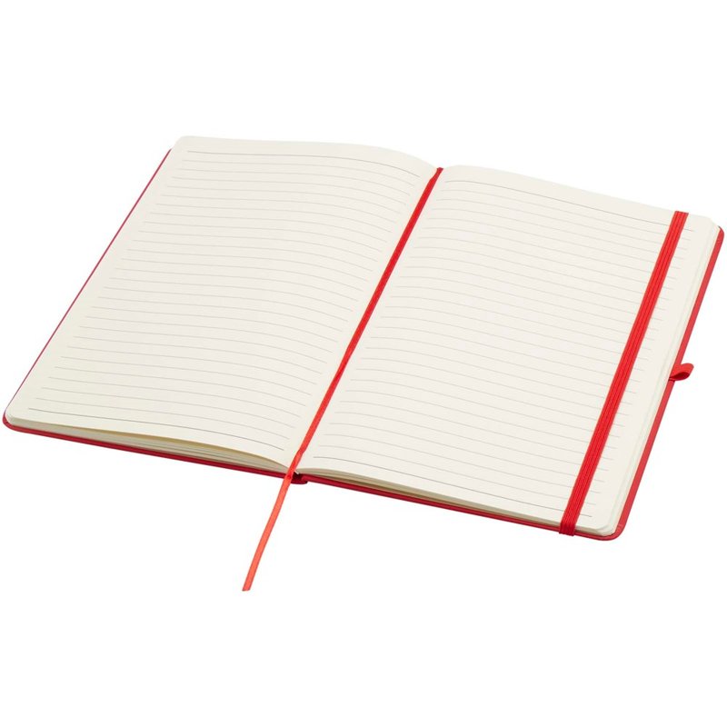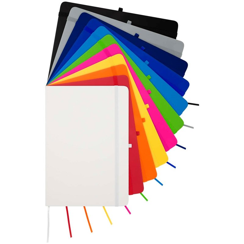 Het Spectrum Plus A5 notitieboek met harde kaft en afgeronde hoeken is niet alleen onmisbaar op kantoor, maar ook een geweldige kans om je merk te promoten. Het kartonnen notitieboek heeft een zacht aanvoelende kaft en 80 gelinieerde crèmekleurige vellen van 70 g/m², ideaal voor het opschrijven van snelle ideeën of lange notities. Het notitieboek heeft een pennenlus, elastische sluiting, lintmarkering en accordeonvak.