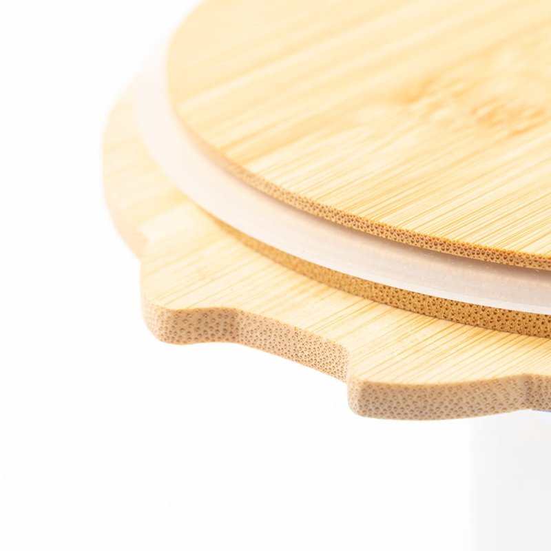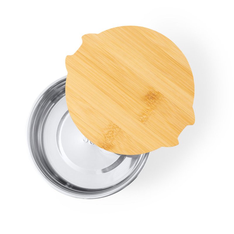 | Eigenschappen: | Met hermetisch deksel in bamboe en elastische sluitband |