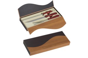 | Eigenschappen: | 14-delige messenblokset met titanium gecoate lemmeten en massief houten (grenen) houder |