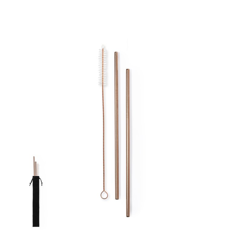 2-delige set rietjes van roestvrij staal met gegalvaniseerde koperen buitenlaag. Inclusief schoonmaakborsteltje en gepresenteerd in een zwart suède etui met trekkoordsluiting. 2 Stuks. Herbruikbaar. Cleaner Inclusief. Fluweel Zakje Rietjes Set Firux 1723