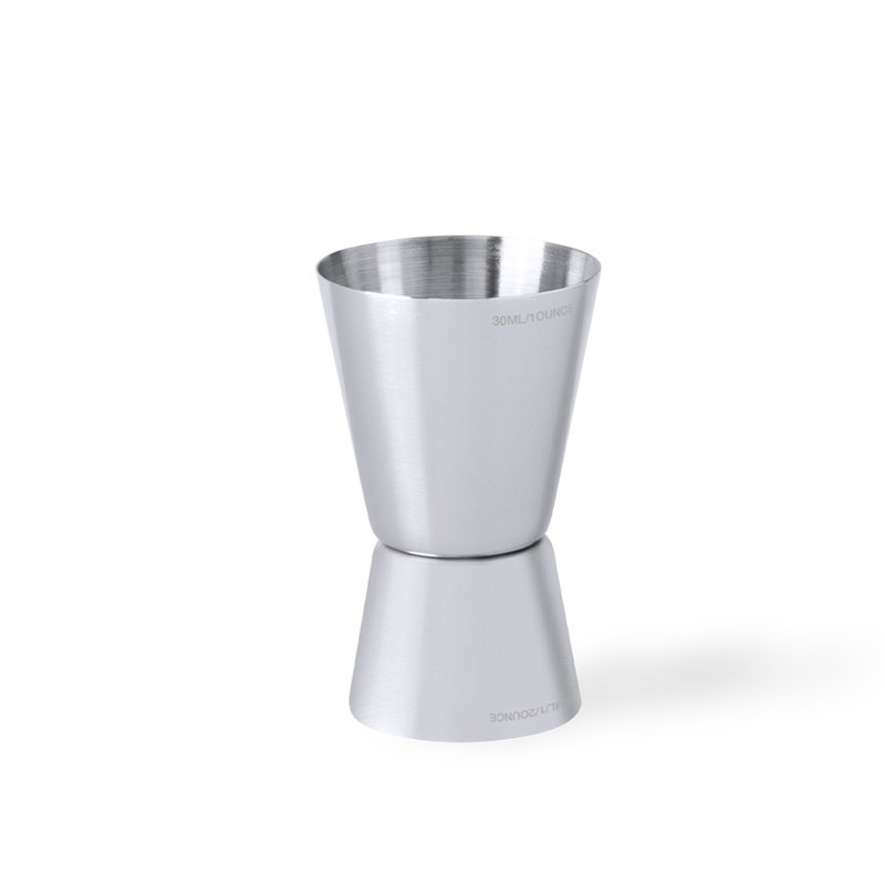 Shotsdispenser van roestvrij staal in matte uitvoering. speciaal ontworpen voor laserprinten en gepresenteerd in doos van PVC.