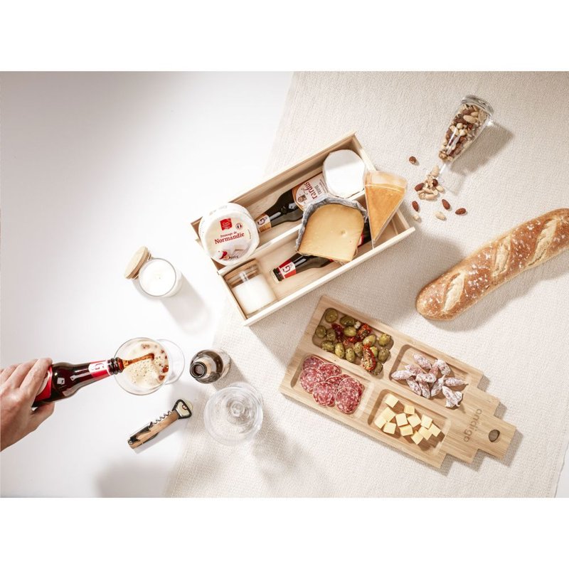 De Rackpack Casa de Tapas Large is de perfecte keuze voor zakelijke professionals die op zoek zijn naar een veelzijdig relatiegeschenk. Dit unieke wijnkistontwerp, dat ook dienst doet als tapasplank, maakt van iedere gelegenheid een feestje. Met deze wijngeschenk, bedrukt met jouw logo, versterk je de band met je klanten en verhoog je de zichtbaarheid van jouw merk.