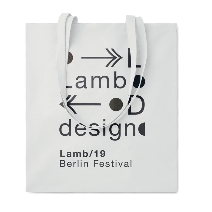 Katoenen boodschappentas met lange hengsels. Gewicht 180 g/m². Geproduceerd onder gecertificeerde standaarden met betrekking tot gebruik van schadelijke stoffen in textiel.