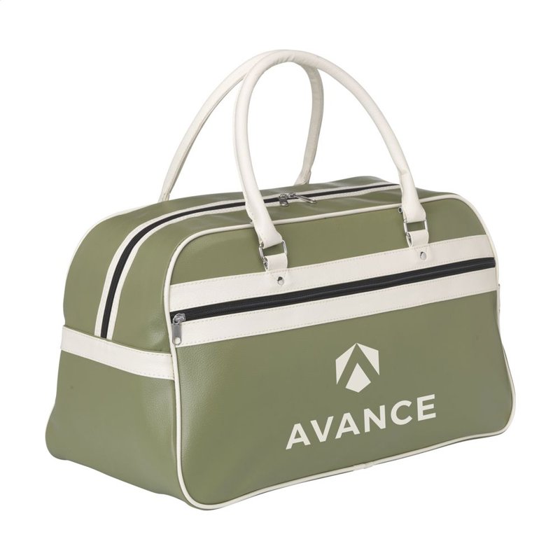 PVC/PU sporttas in jaren '70 look met gevoerde binnenzijde, hoofdvak en ritsvak, 2 stevige handgrepen, inlegbodem en beschermnoppen. Afgewerkt met hoogwaardige materialen die een lange levensduur garanderen. Inhoud 21,5 ltr.