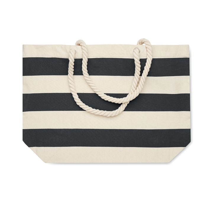 Gestreepte strand- of boodschappentas van katoen met koordhandvat. 220 gr/m².