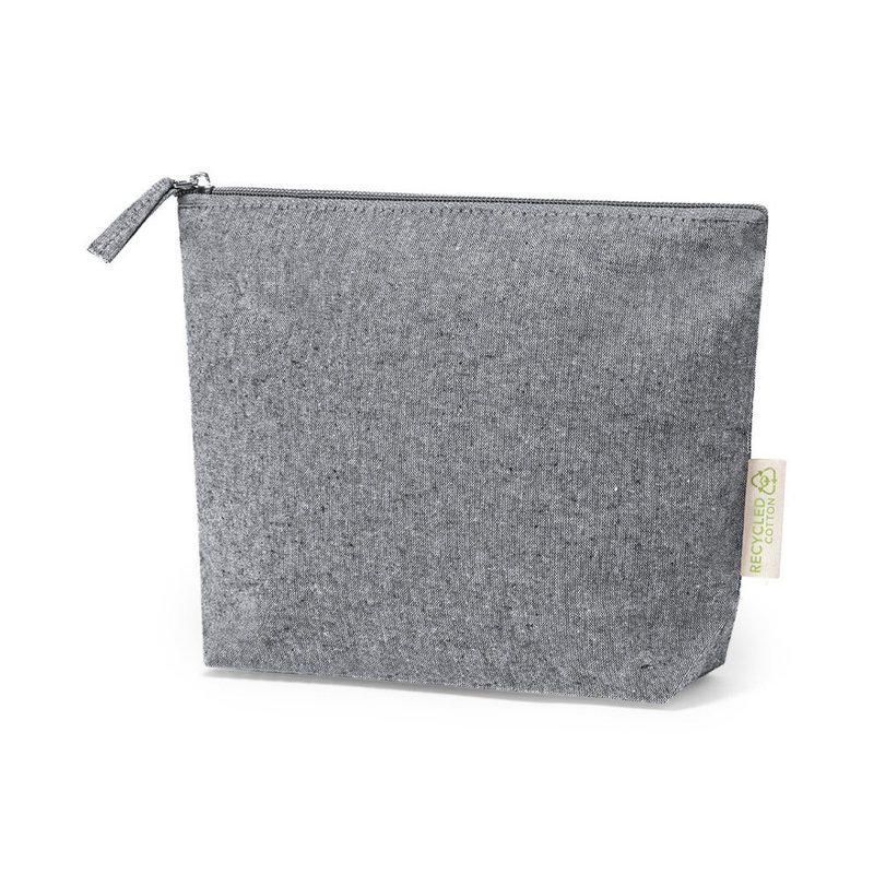 Schoonheidstasje van stevig, 100% gerecycled katoenmateriaal in 180g/m2. Met GRS-certificaat (Global Recycled Standard), dat de gerecyclede herkomst van het voor de vervaardiging van het product gebruikte materiaal garandeert. Ritssluiting met bijpassende trekker en eco-embleem op het buitenlabel.