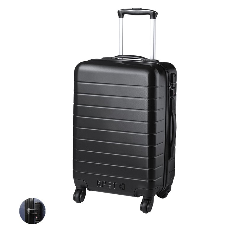 - Gegraveerd RPET-embleem: Subtiele verwijzing naar het duurzame karakter van de trolley.
