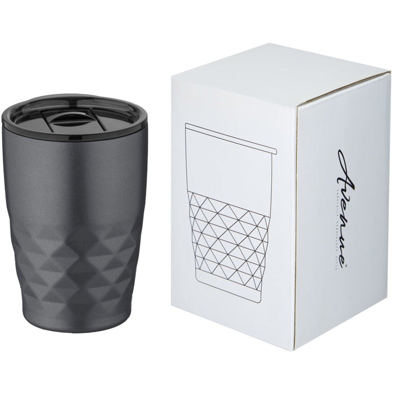 De Geo tumbler heeft een dubbelwandige vacuümconstructie met koperen isolatie, waardoor dranken tot 8 uur warm en 24 uur koud blijven. De constructie voorkomt condensvorming aan de buitenkant van de beker. Voorzien van een eenvoudig te gebruiken push-on deksel met schuifsluiting. De brede opening maakt vullen en schenken comfortabel. Inhoud: 350 ml. Geleverd in een geschenkverpakking.
