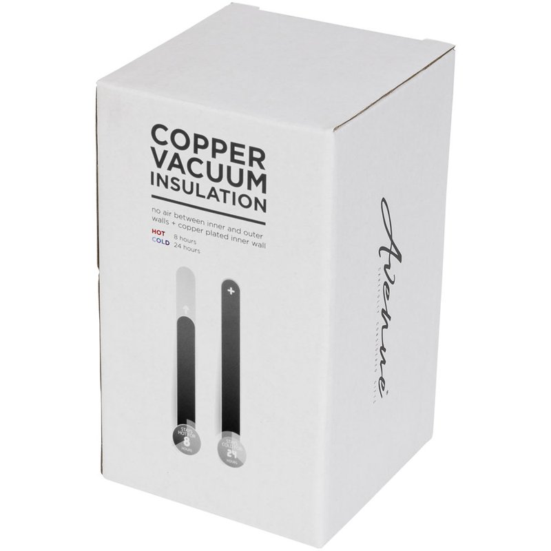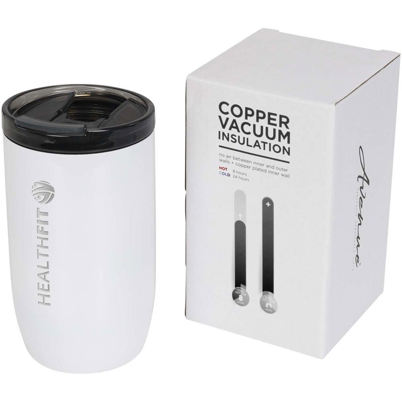 Deze duurzame, compacte beker is ideaal voor op reis. Deksel is lekbestendig met een gemakkelijk te openen sluiting. De beker bestaat uit een roestvrijstalen, dubbelwandige vacuüm constructie met koperen isolatie wat betekent dat drankjes gedurende 8 uur warm en gedurende 24 uur koud blijven. De constructie voorkomt ook condensatie aan de buitenkant van de beker. Volume 380 ml. Gepresenteerd in een Avenue geschenkverpakking.