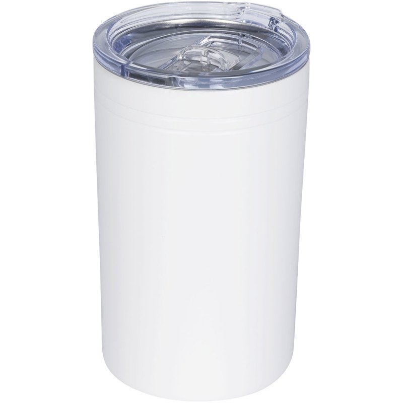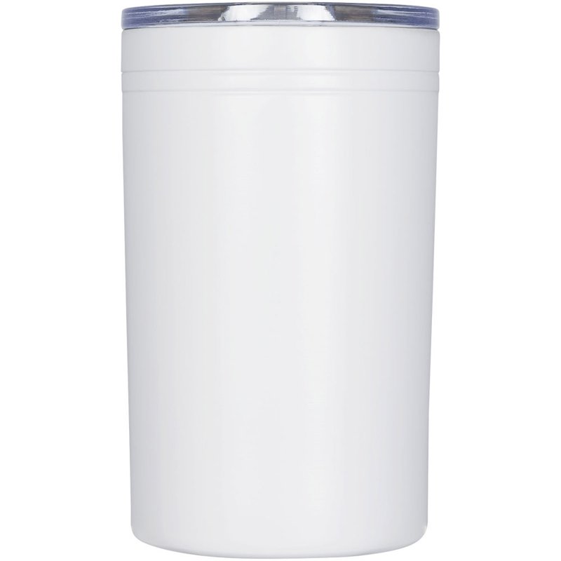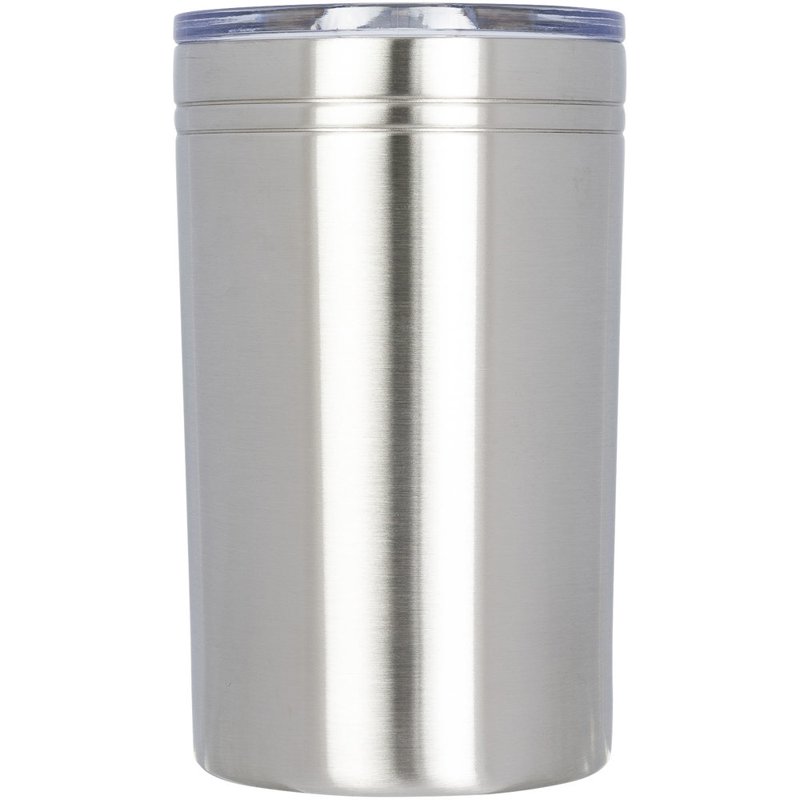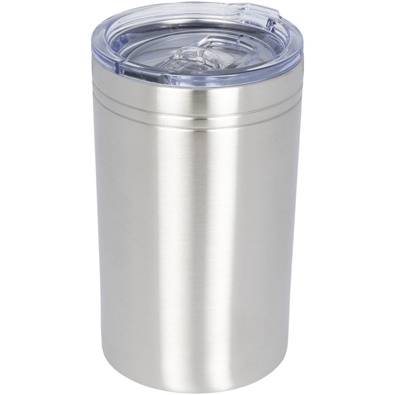 Dubbelwandige constructie, vacuüm geïsoleerd. Doorzichtige drukdeksel met een schuifsluiting. Te gebruiken als beker of drankisolator. Volume 330 ml.