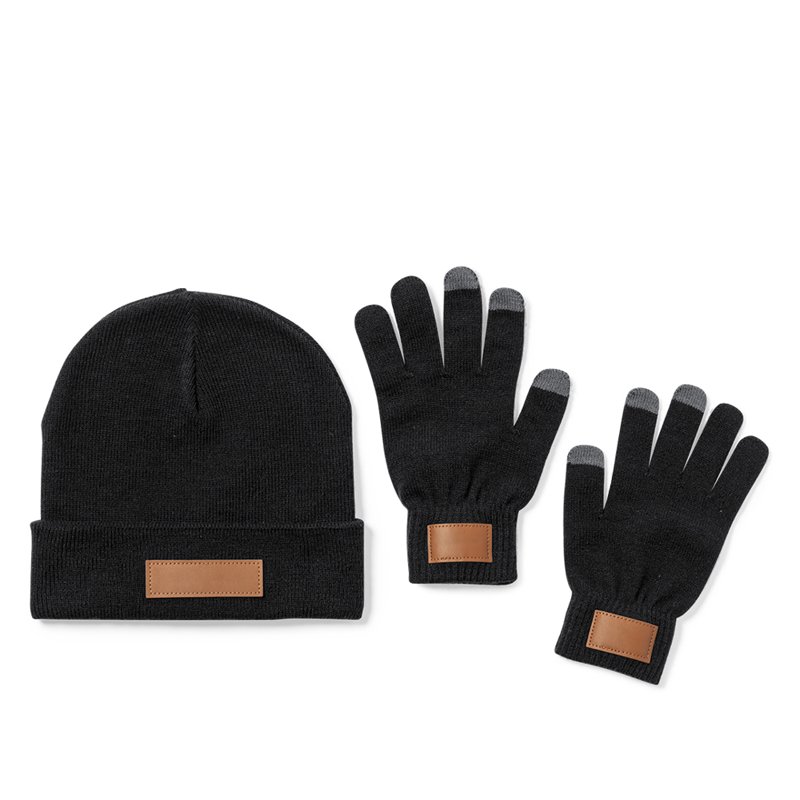 **Set Prasan: de perfecte set voor koude dagen** Met Set Prasan zorg je ervoor dat jouw merk ook tijdens de koudere maanden goed zichtbaar is. Deze 2-delige set, bestaande uit een muts en touchscreen handschoen, biedt jouw relaties warmte en comfort. Ideaal voor het bedrukken met jouw logo, of voor op maat gemaakte ontwerpen die jouw merk perfect weerspiegelen. Kies voor goedkope bedrukte handschoen en verhoog de naamsbekendheid van jouw bedrijf.
