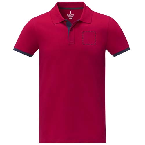 Er zijn verschillende mogelijkheden om jouw logo op deze polo te laten bedrukken. Kies voor de rechter borst met afmetingen van 120mm x 120mm of 78mm x 78mm. Het impact hoog op de achterzijde is opvallend met een maat van 310mm x 380mm. Op de linker borst zijn afmetingen van 120mm x 120mm of 78mm x 78mm beschikbaar. Zo bepaal je zelf waar jouw logo het beste tot zijn recht komt.