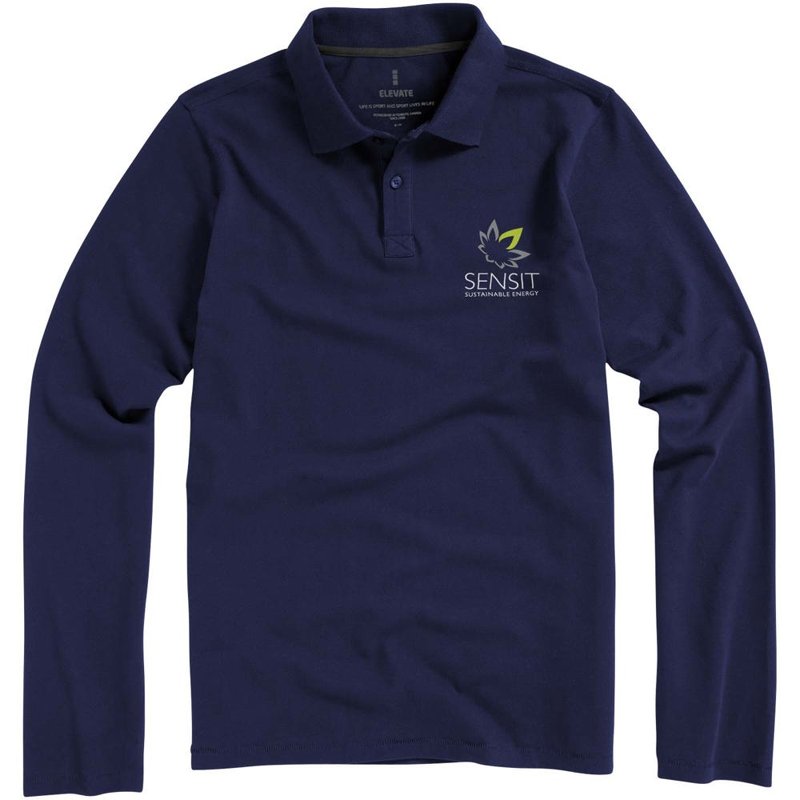 De Oakville heren polo met lange mouwen van Elevate Life is dé stijlvolle oplossing voor jouw bedrijfspromotie. Ideaal voor elke professionele setting, biedt deze heren polo niet alleen comfort maar ook een kans om jouw merk te laten opvallen. Laat de kans niet liggen om jouw logo te laten bedrukken op een heren polo, voor een verfijnde uitstraling en verhoogde merkbekendheid.